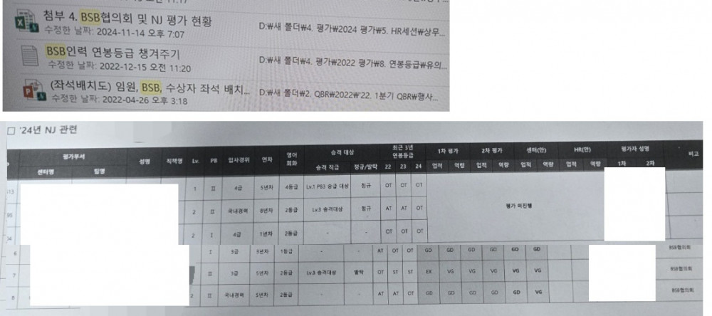 An Excel management file among the leaked materials included data showing that BSB Council members were listed as promotion candidates and systematically given higher evaluation grades.