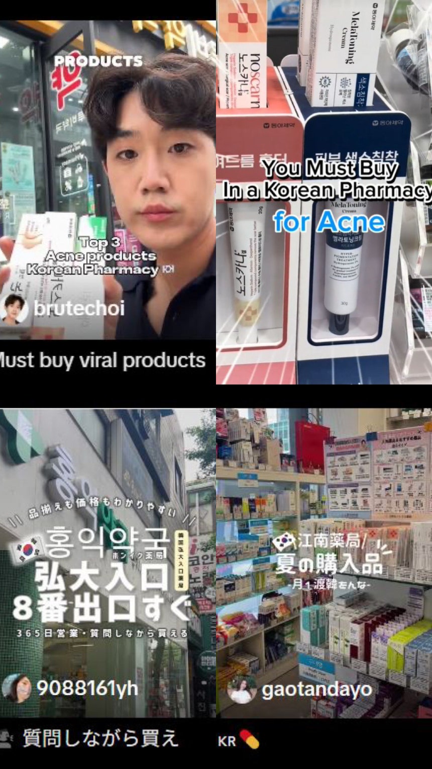 Another big driver of this trend is social media buzz. On TikTok and Instagram, one can find countless videos titled “Korea Travel: Must-Buy Products at the Pharmacy” where influencers showcase their Korean pharmacy hauls. Similarly, Chinese users on Xiaohongshu (Little Red Book) eagerly share photos of baskets overflowing with ointments and creams they scored in Seoul, accompanied by rave reviews. These posts often emphasize that Korean pharmacy items are affordable and great for post-treatment care (for example, applying after a skin laser or facial). Shoppers proudly post their multi-tube purchases as a badge of “yakguk (pharmacy) shopping” success. Word-of-mouth on social networks has effectively turned items like pimple patches, scar gels, and vitamin creams into souvenir wishlist items for travelers.