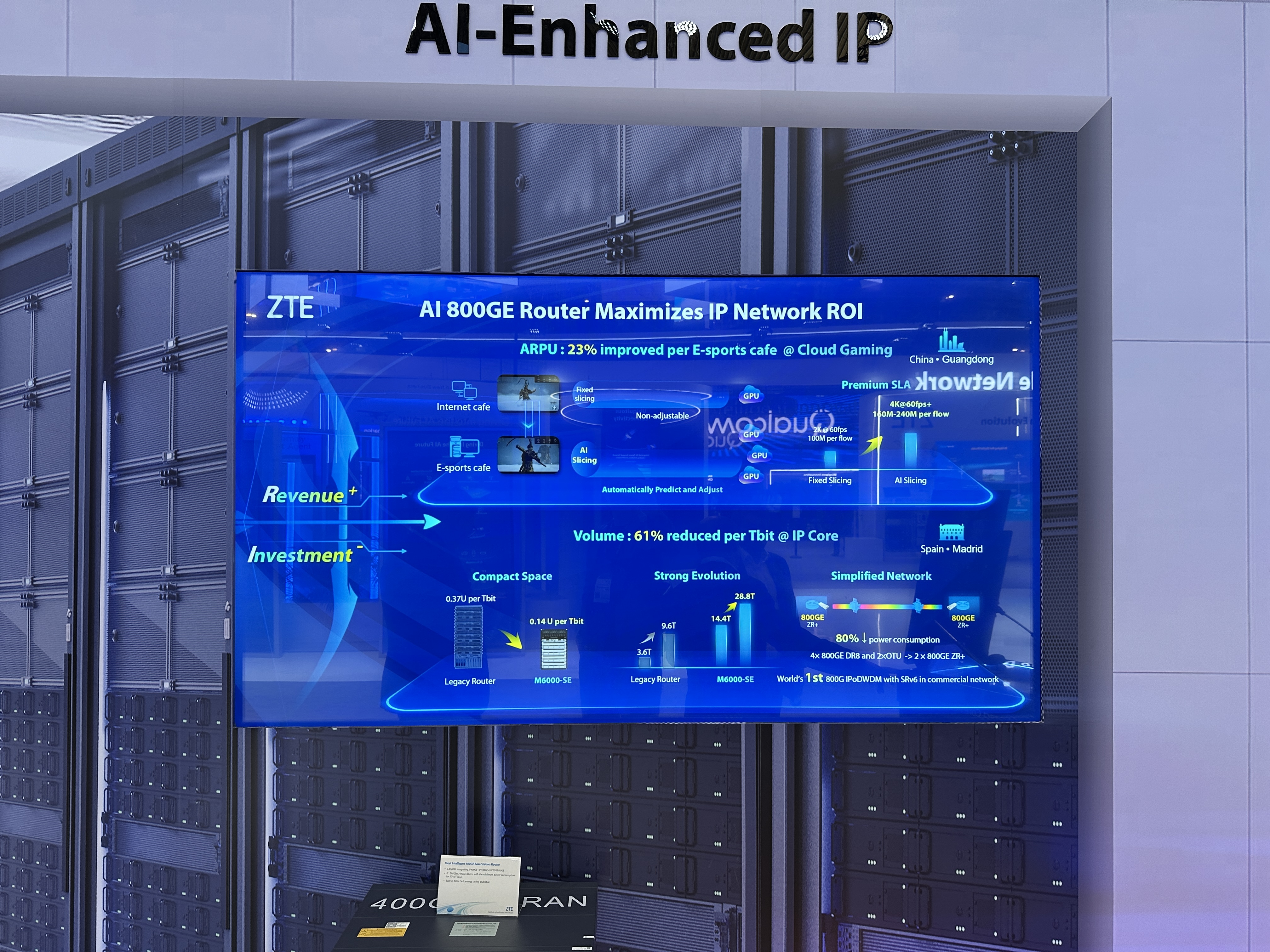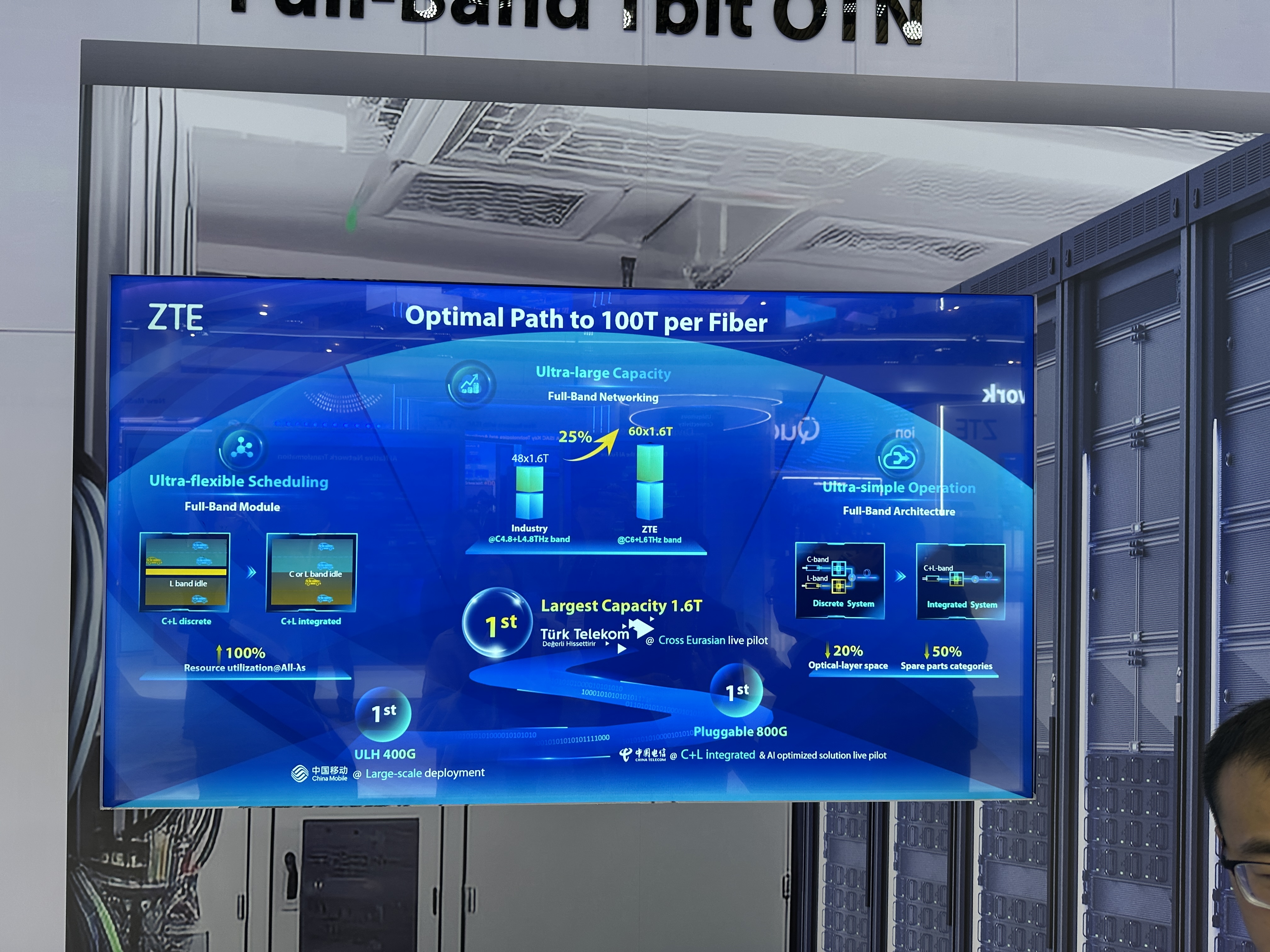 ZTE 부스의 두 번째 주요 전시 영역은 차세대 광통신 네트워크입니다. 여기서는 초고속 데이터 전송 및 네트워크 인프라의 비용 효율성을 극대화할 수 있는 혁신 기술들이 주목받았습니다.
